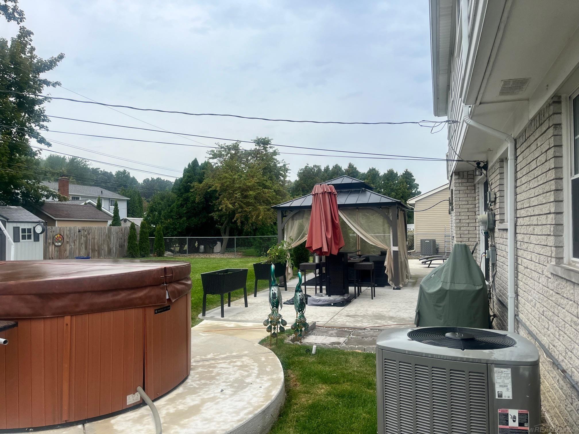 Spacious 4 bdrm home with Large and inviting backyard... Fenced yard, new cement patio with gazebo (with new curtains), above ground pool, hot tub, large shed with raised cement pad, and still room to roam! Freshly painted, natural fireplace in family room, updated flooring, hdwd floors, large laundry/mud room off attached garage, nice flowing home with room to entertain, granite tops in kitchen w/ all appliances included, partially finished basement...this one is a must see!