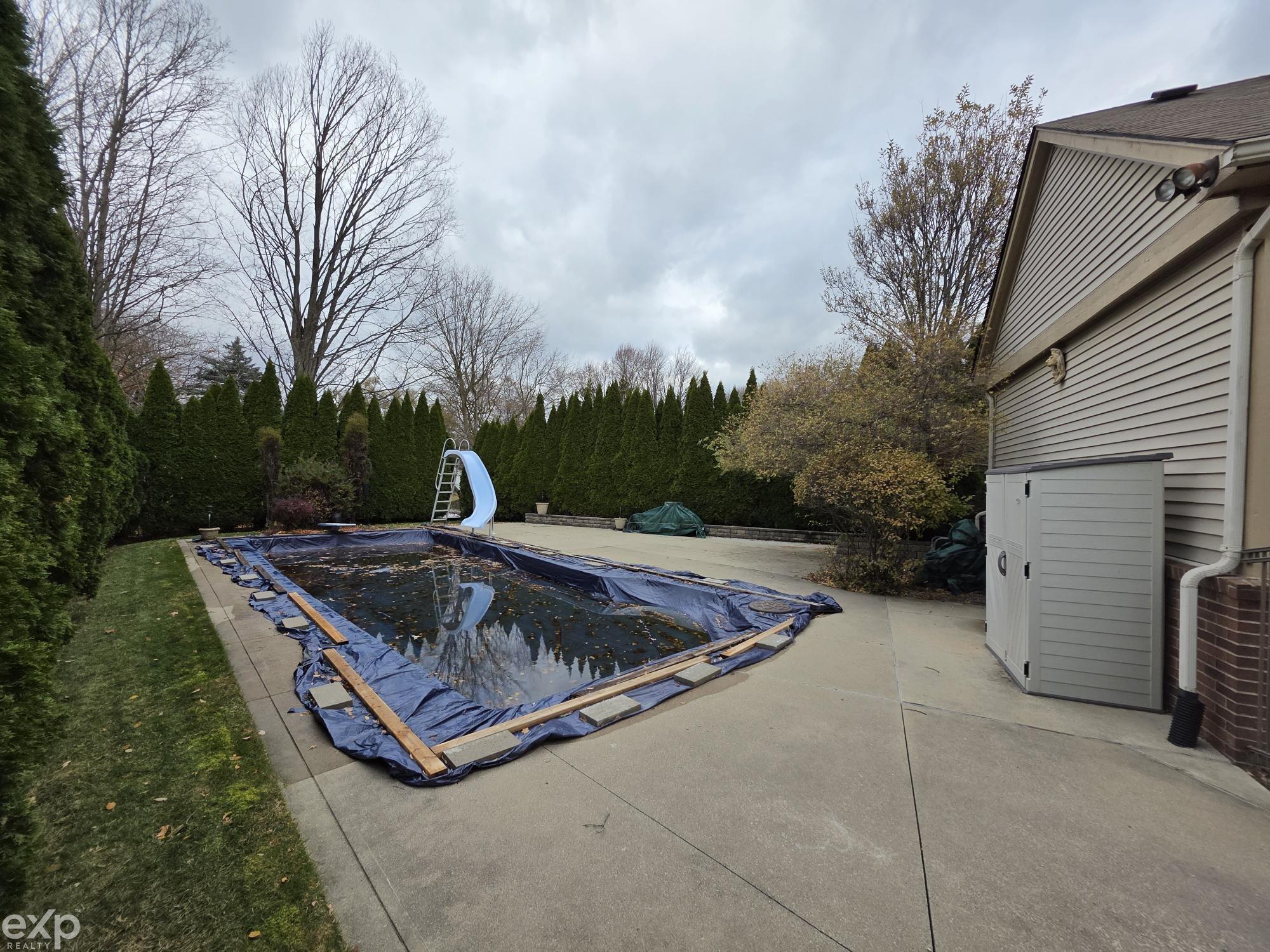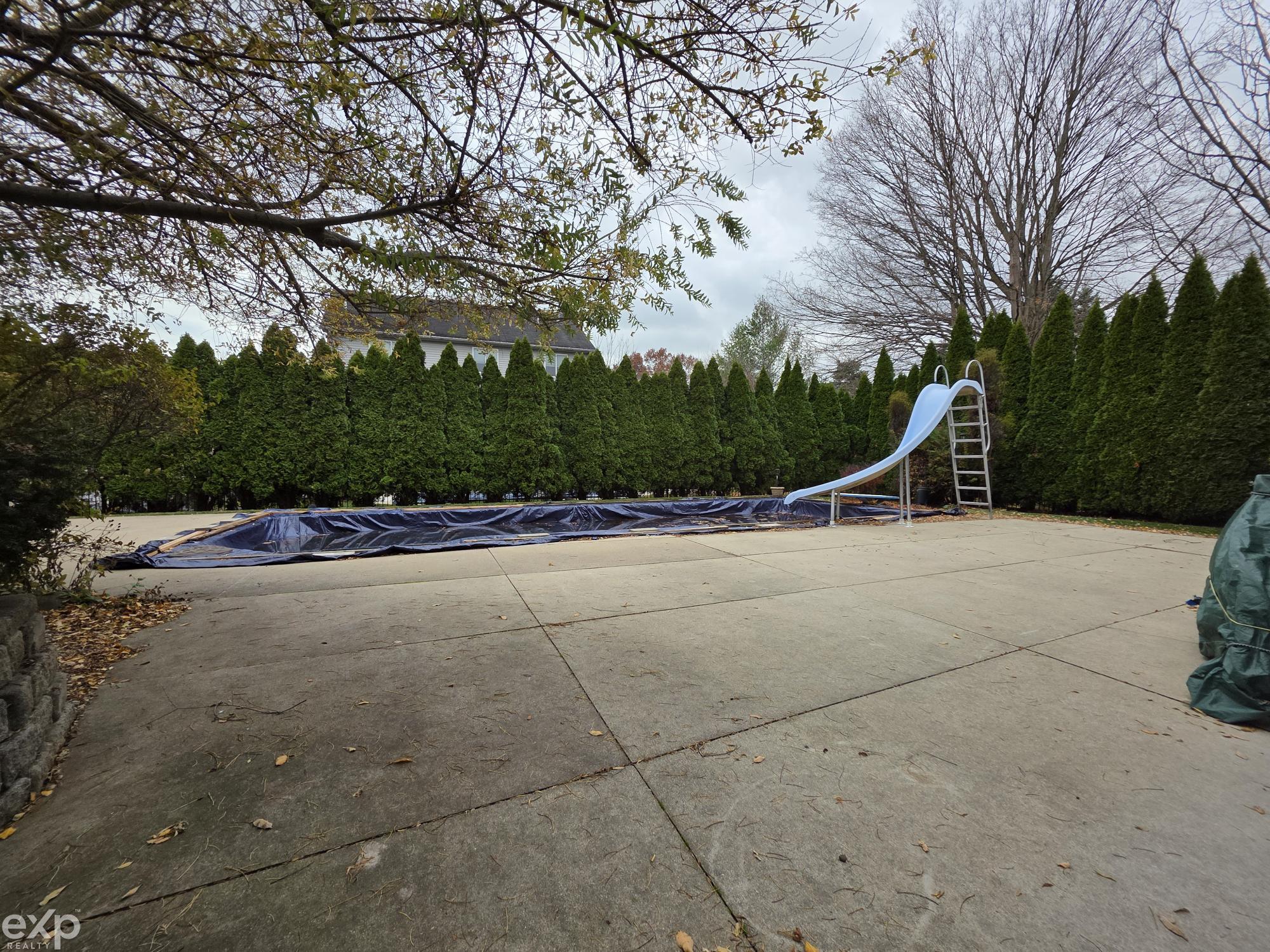 Welcome home to this exceptional 4-bedroom, 2-full/2-half-bath colonial nestled at the end of a peaceful cul-de-sac in the highly desirable River Bend Park subdivision. Built in 2002 and boasting approximately 4,041 sq ft of finished living space (3,041 above-grade, 1,000 in finished lower level), this residence delivers both style and substance. A wrap-around porch greets you and sets the tone for the impressive curb appeal. Inside, soaring 10-foot ceilings on the main level open into an elegant foyer, a formal living room, and dining room. The heart of the home is the gourmet kitchen—featuring maple cabinetry, ample counter space, center island, and flows seamlessly into the family room which showcases a gas fireplace great for both everyday living and entertaining. Retreat upstairs to a spacious primary suite with generous walk-in closet and private bath. Three additional bedrooms and a well-appointed hall bath complete the second floor. The fully finished lower level expands your living footprint with recreation space, dedicated bar area, and room for a home office or gym—making this home ideal for multigenerational living or hosting guests. Step outside to your private backyard oasis: a brick-paver patio leads to an in-ground fiberglass pool enclosed by a fence, perfect for Michigan summers. The yard also features mature landscaping, sprinkler system (separate meter), and a convenient outdoor storage shed. Parking/utility needs are covered by the attached 3-car garage with direct access and side driveway. Additional highlights include: generous lot size and within the acclaimed L’Anse Creuse School District. This thoughtfully designed home blends everyday comfort with exceptional amenities and is perfectly situated. Don’t miss your opportunity to own a rare find in Harrison Township—schedule your private showing today!